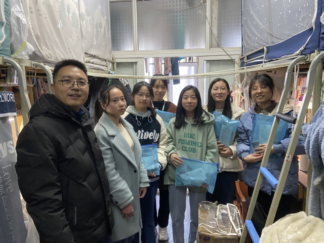 李书记携带学院精心准备的慰问礼包,与同学们亲切交谈。他关心同学们的复习备考状态,仔细叮嘱同学们要保持良好的作息规律,注重身体健康,并鼓励他们在最后的冲刺阶段调整心态、坚定信心,以从容姿态迎接考试。辅导员田绪浩和蔡卓嵘也为同学们加油打气,田绪浩为责任班每位考研学生写了一张明信片,为他们加油打气。其他辅导员通过各种方式将慰问礼包发放给学生。