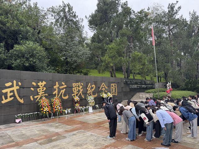 走出展馆,学员们来到室外的百家姓参观区。这里环境清幽,每一个姓氏背后都承载着中华民族的传承与发展,记录着无数家族在抗战中做出的贡献与牺牲。随后,在本科生党总支副书记杨佳子的带领下,全体人员整齐列队,在武汉抗战纪念园全体师生面向纪念碑肃立,并行三鞠躬礼,表达对革命先烈的深切缅怀与崇高敬意。