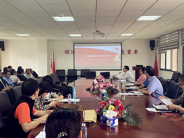 党的十八大以来,党中央高度重视高校思想政治教育工作,全面构建高校思政工作体系,紧紧抓住高校立德树人、铸魂育人根本任务,提出了一系列新理念、新思想、新战略、新举措。为进一步提高亚博取款教师对课程思政的认识,更好的将课程思政融入日常的教学工作,2021年5月27日在群贤楼215大会议室,亚博取款特别邀请了学校马克思主义学院的赵继伟教授为亚博取款全体教师讲授了一次课程思政方面的专题报告,学院张凤松书记主持。