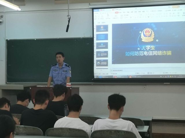 派出所民警采用现场宣讲的方式,用通俗易懂的语言和翔实的具体案例,着重向同学们揭露诈骗分子惯用的各种诈骗手段,如:刷单诈骗,贷款诈骗,冒充老师同学或者家人诈骗,冒充客服退款类诈骗等等。加深同学们对诈骗危害性的认识,让同学们更直观的了解到各种防诈骗知识与技巧,提高防范意识,有效防止诈骗事件的发生。