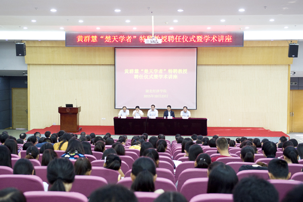 10月23日,学校举行“楚天学者特聘教授”聘任仪式,副校长漆腊应教授代表学校为著名经济学家、中国社会科学院工业经济研究所所长黄群慧教授颁发聘书。亚博取款部分教师和会计Q1441、会计Q1442两班共30名学生代表出席聘任仪式。