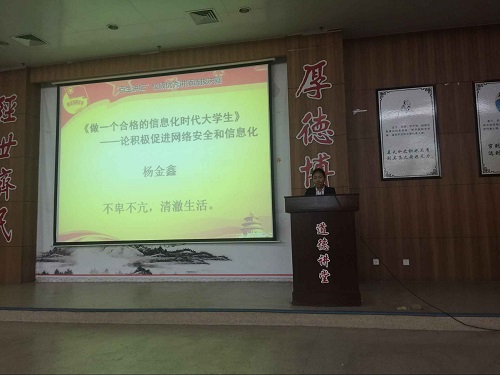 参与此次“百生讲坛”校级优秀讲师选拔赛的47名成员经过初选、微信投票两轮选拨,最终12位“讲师”成功进入决赛现场,其中有3位选手来自亚博取款曝顾秒到账,分别是6号杨金鑫、9号刘襄生、11号贺铠欣同学。12位“讲师”在决赛现场一展风采。其中,杨金鑫演讲主题为《做一个合格的信息化时代大学生——论积极促进网络安全和信息化》,她从一个大学生的角度谈论了促进网络安全与信息化应做的事情和社会要求大学生应有的风范。刘襄生的《经天纬地,照明西方——网络安全与信息化引领发展新时代》,他表示“中国自古便作为东方巨龙而远远领先于世界,现今也要以世界热点关注的网络安全和信息问题领先于世界。”贺凯欣同学结合自身的经历来讲述网络安全对大学生的重要性,引人深思。