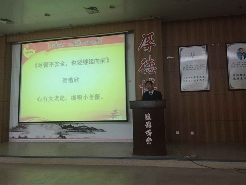 11月8日晚8点,在图书馆“道德讲堂”内,由校团委主办的“百生讲坛”校级优秀讲师选拔赛决赛拉开帷幕。担任本次决赛的评委分别是各院系的分团委书记,同时校团委书记王友刚、校团委副书记车纯贤作为特约嘉宾出席。本次决赛由校团委学生副书记杨霆威主持。