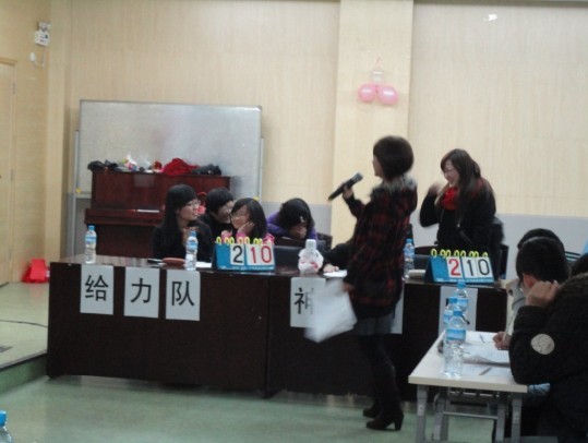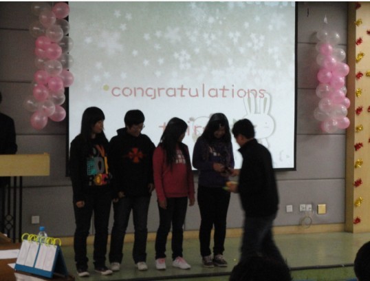 在比赛过程中,还穿插了手语《天使》的表演,以及注会2班排练的啦啦操,还有“你来比划我来猜”的互动游戏。