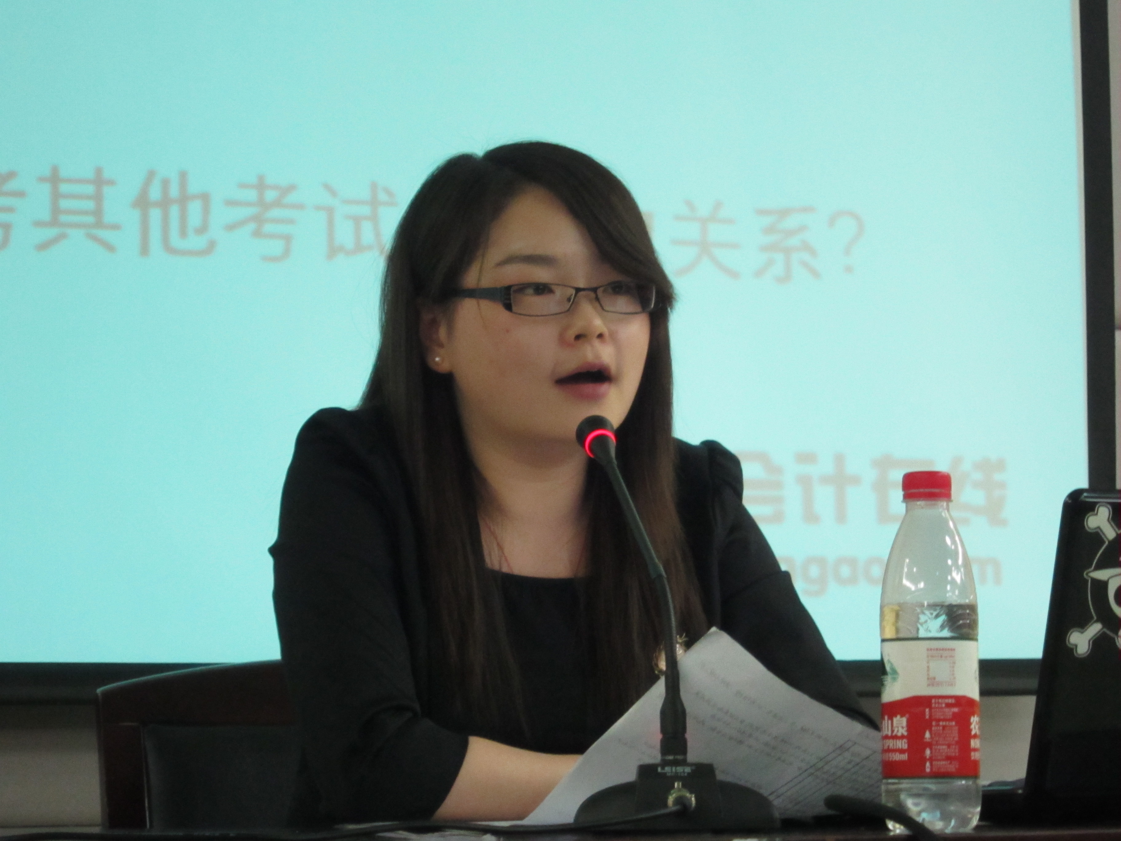 白俊卿,京城实力派辅导咨询专家、中国注册会计师、中级会计师、东奥师资体系负责人、东奥CPA考试教研室资深研究员、北大东奥轻松过关系列图书高级编辑,多年从事会计类人员职业规划设计及考试咨询工作,具有丰富的案例和授课辅导经验。白老师就“会计专业的学生以后该找什么工作,如何发展”“注会如何考试、如何备考”等方面展开讲座,同时,把会计形象的比喻成无花果“无花果浑身是宝”,通过幽默诙谐的语言引人入胜,使在场的同学们受益匪浅。同时,白老师详细的讲解了CPA职业发展前景及CPA备考相关事项。
