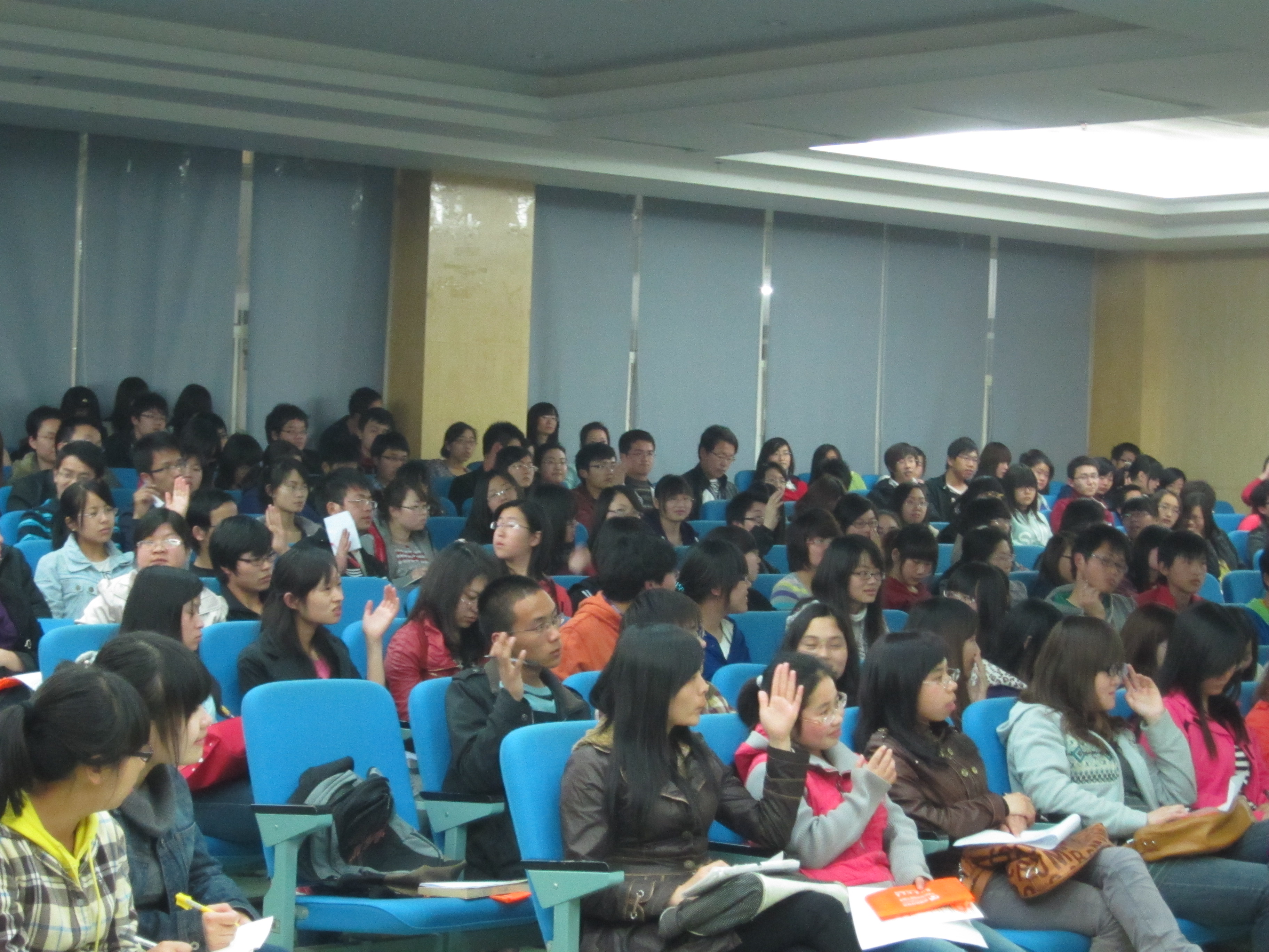 在白老师幽默、风趣语言的感染下,整场讲座生动、有趣,同学们听得津津有味,其间,同学们积极参加互动环节,争先恐后回答问题,场面好不热闹,接下来的会场笑声不断,气氛相当活跃。在整场讲座结束前,开展了一项抽奖活动,再次把会场气氛推向高潮,本次讲座在愉快、活跃的氛围中结束。此次讲座对有意向报考CPA的莘莘学子来讲,无不是一顿丰盛的精神食粮。