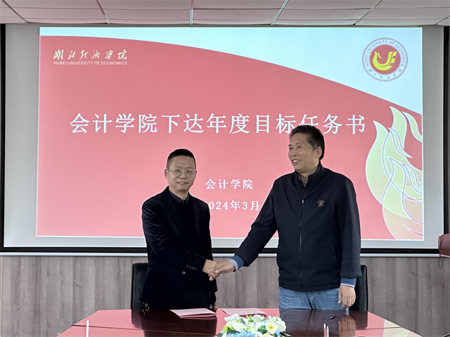 院长胡伟对学校下达的2024年度目标任务中的共性目标、学科建设、教育教学、科研工作等各项指标进行了解读。经学院党政联席会研究,围绕专业建设、人才培养、科学研究、第二课堂、就业等工作对任务进行了分解,对会计系、财务管理系和审计系下达了共性目标任务和量化指标。