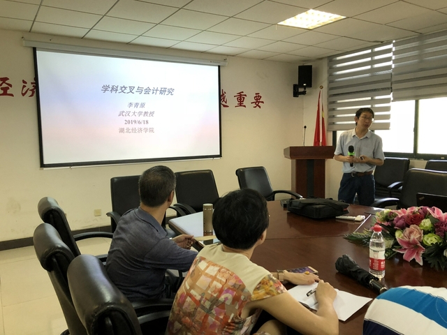 6月20日下午,武汉大学李青原教授应邀来中心作了题目为“国际会计的交叉研究”的学术讲座,中心研究员和研究生积极参加了此次报告会,胡伟院长主持报告会。