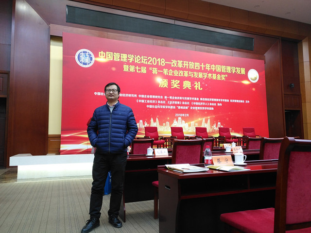 2018年2月2日,由中国社会科学院工业经济研究所、中国企业管理研究会、蒋一苇企业改革与发展学术基金、陈佳贵经济管理青年学术基金、经济管理出版社共同主办,《中国工业经济》杂志社、《经济管理》杂志社、《中国经济学人》杂志社共同协办,中国社科院学科建设“登峰战略”企业管理优势学科资助的“中国管理学论坛2018——改革开放四十年中国管理学发展学术研讨会暨第七届蒋一苇企业改革与发展学术基金奖颁奖典礼”在中国社会科学院学术报告厅举行。