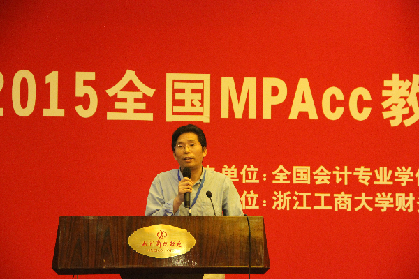 胡伟向与会代表做了题为“丰富实践平台,提升案例品质”的主题发言,他首先介绍了我校MPAcc的办学概况,然后分别从制度建设、师资培训、实践平台搭建、实务专家进课堂以及社会实习实践等五个方面,和与会代表分享了我校在MPAcc研究生实践教学上的具体做法与初步成效,引起了与会代表的极大兴趣和广泛关注。