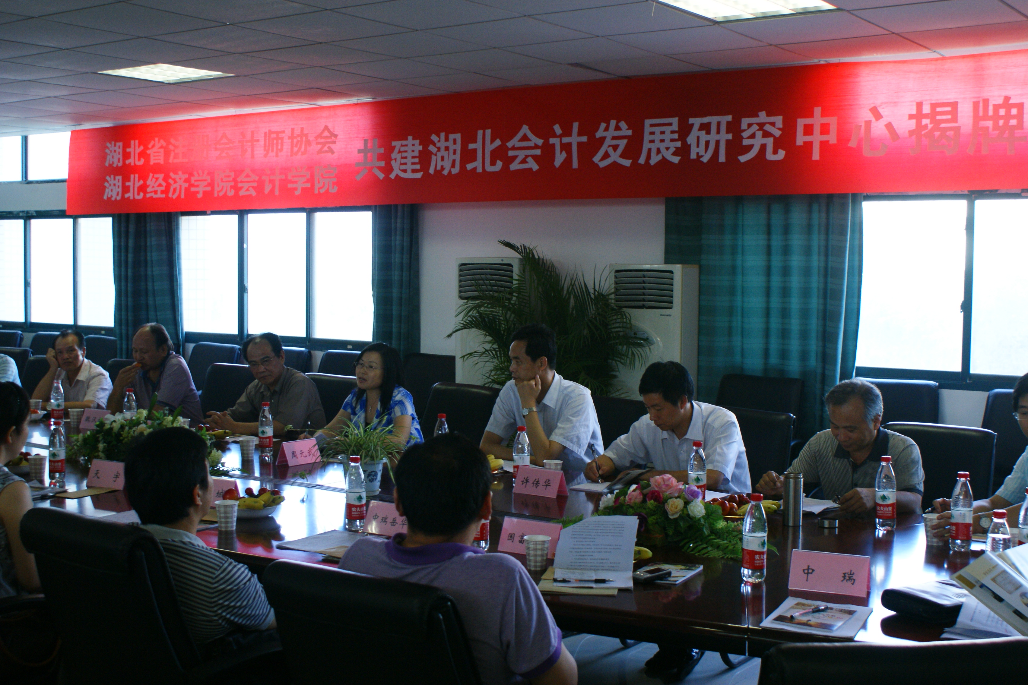 副校长张奋勤与湖北省注册会计师协会秘书长尹祚田共同为湖北会计发展研究中心进行了揭牌。