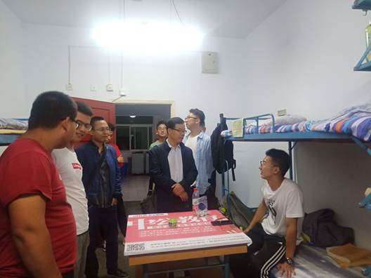 95日晚,新生报到一结束,KY开元官网党总支书记王建斌、副书记刘正、副院长杨玲娟分别带领新生班主任、辅导员和学生干部深入华英公寓、芝园公寓、行健公寓看望2019新生。
