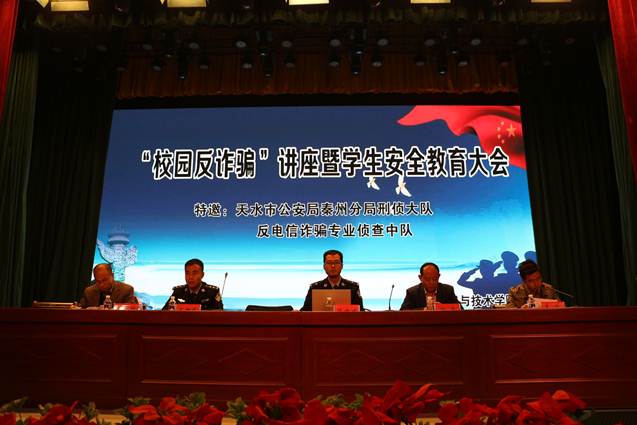 11月15日晚,KY开元集团官网在校文化礼堂举行“校园反诈骗”专题讲座暨学生安全教育大会。天水市公安局秦州分局刑侦大队反电信诈骗专业侦查中队陈方方、王朝东两位警官做了专题讲座,学院相关领导就政治安全、人身安全、财产安全、食品安全、实验室安全等方面做了全面讲解,并就KY开元官网安全稳定工作做了安排部署。学院党总支副书记刘正、副院长李志锋、各班班主任、全体辅导员及在校学生共计650余人参加会议。