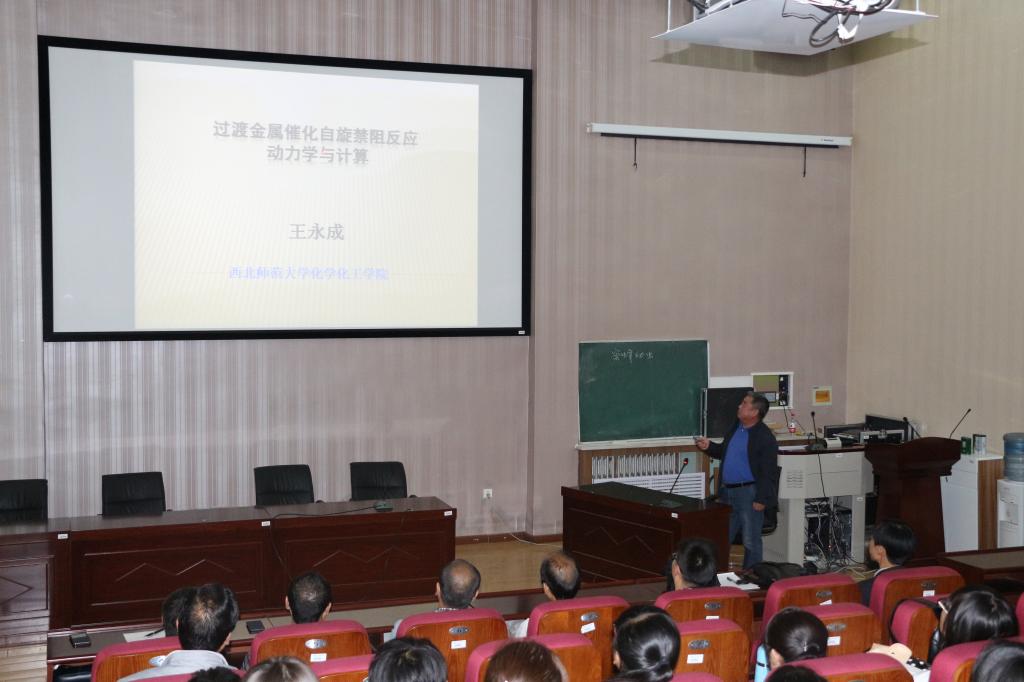 2016年9月28日,KY开元官网邀请到西北师大教授、博导王永成为KY开元官网师生作了题为“过渡金属催化自旋禁阻反应动力学及计算”学术报告。