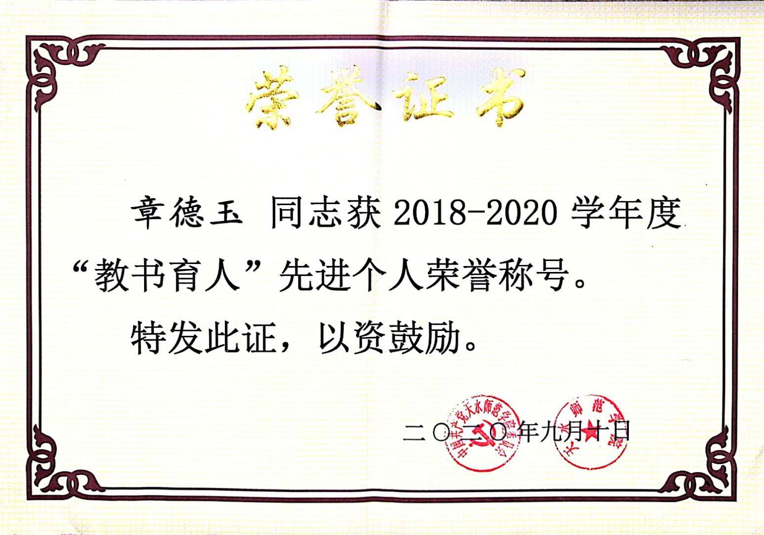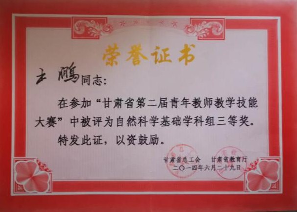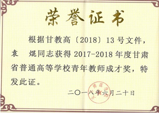 近年来,学院在新进青年教师中实施“青年教师培养导师制”,使青年教师尽快熟悉教学过程,成长为教学能手。鼓励年轻教师攻读博士学位,十三五期间,共引进博士13人,4位教师获评正高级职称,2位教师获评副高职称,3位教师攻读博士学位。1人入选教育部“新世纪人才”,2人被聘为甘肃省“青年飞天学者”,1人入选甘肃省领军人才,1人荣获甘肃省园丁奖,5人荣获甘肃省高等学校青年教师成才奖,9人入选KY开元官网“青蓝人才工程”。1位教师获天水师院“四有”好老师,11位教师荣获天水师院“三育人”先进个人,2位教师获KY开元集团官网第三届教学优秀奖。在校级“微课竞赛”中,1位教师荣获一等奖,1位老师荣获二等奖。