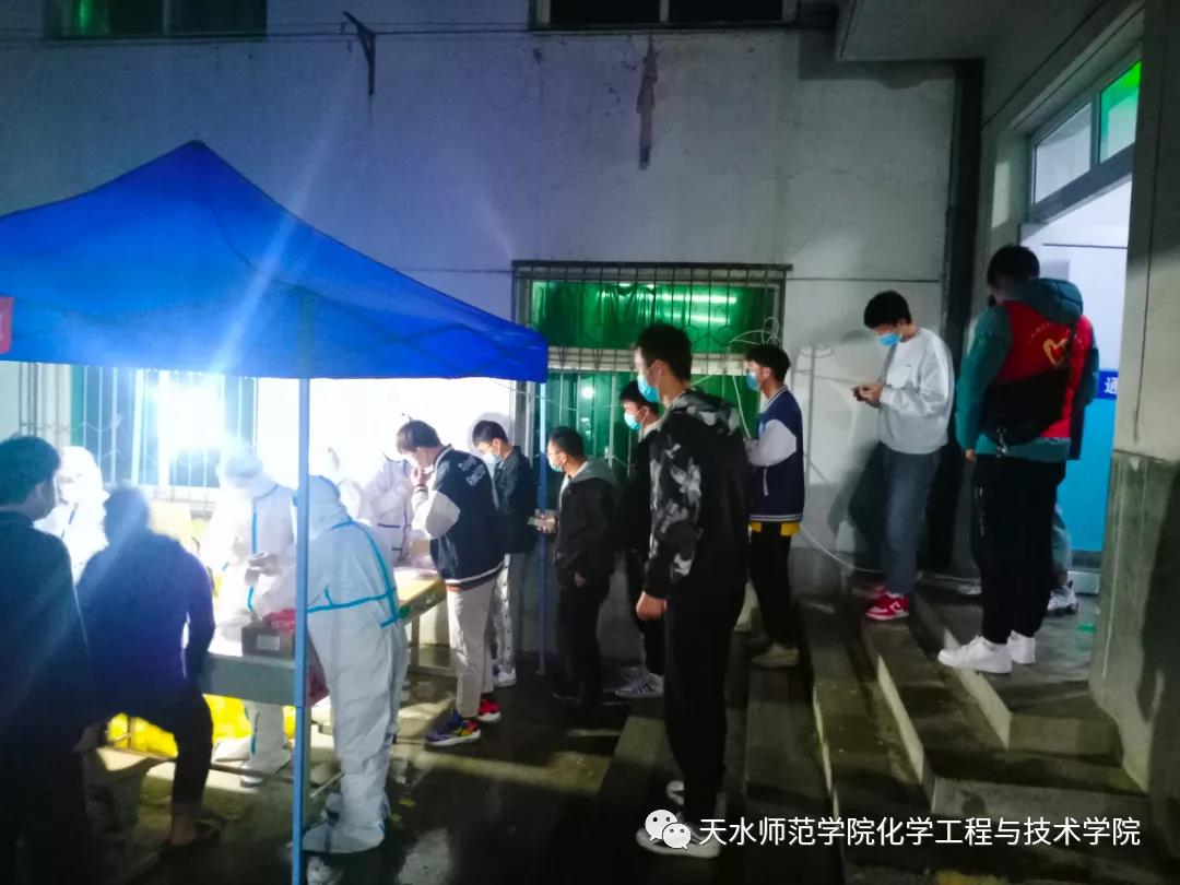 虽然已是深夜,但同学们并未被突如其来的检测搞的手忙脚乱,依旧像白天一样,听从引导,自觉保持一米间距排队,依次进行核酸检测。这不是一次简单的核酸检测,这是新时代青年有担当、愿担当、敢担当的生动刻画,这是对同学们希望早日走出宿舍、战胜疫情的信心和决心最好的回答。