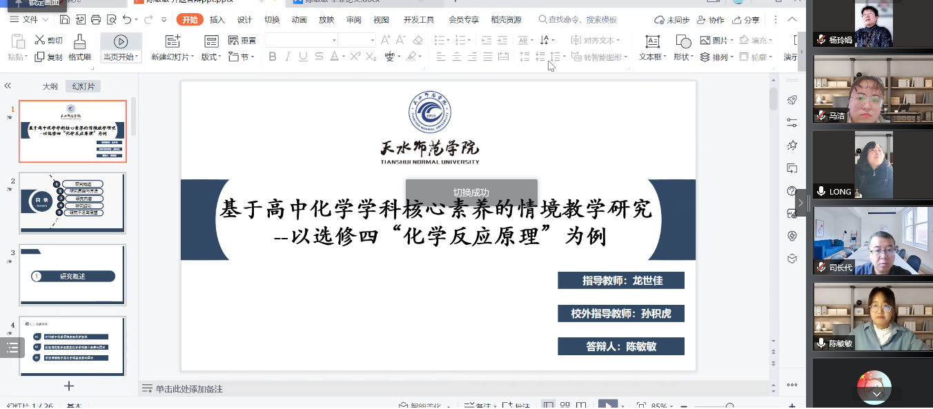 根据研究生处工作安排及近期疫情防控工作的要求,为保障2022届教育硕士研究生学位论文的高质量完成,KY开元集团官网通过认真制定线上教育硕士学位论文预答辩工作方案,周密安排整个答辩流程,于3月28日在腾讯会议平台举行了2022届学科教学(化学)教育硕士研究生学位论文预答辩。此次线上预答辩共有13位教育硕士研究生参加,2021级全体研究生在线旁听观摩。