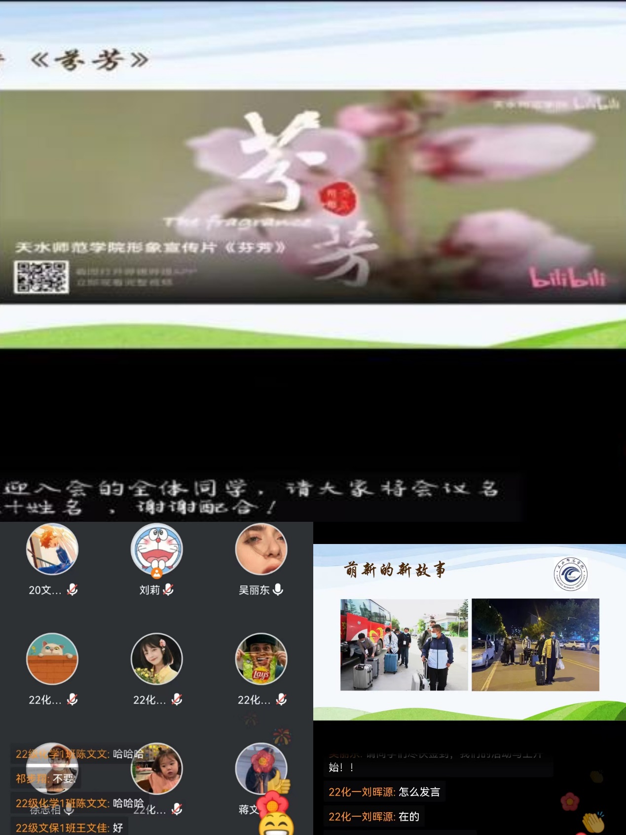 座谈会上,首先为2022级新生播放了KY开元官网宣传片《芬芳》,视频中向大家展示了羲皇故里,丝路明珠,龙城天水。随后,20级和22级学生干部带领新生共同合唱了KY开元集团官网校歌《我的精神家园》。最后,20级与21级学生代表分别发言,给大家分享了她们精彩的团故事,畅谈了在学校学习生活的感受,并为新生解决了他们生活与学习中遇到的问题。