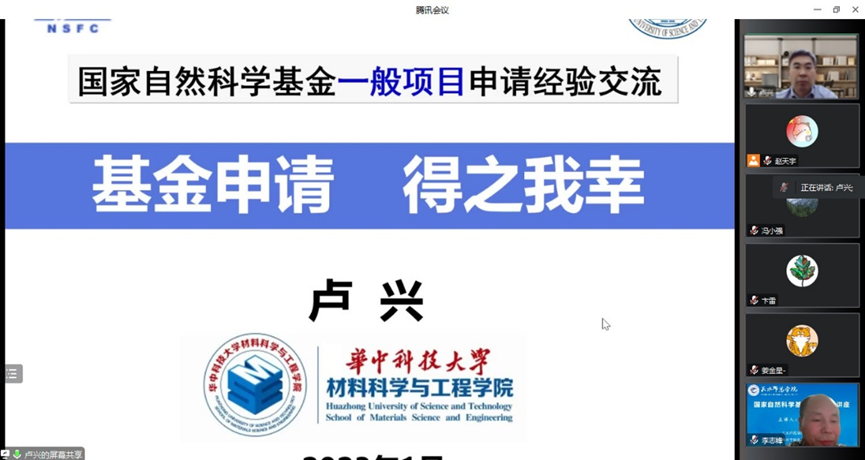 为进一步做好2023年国家自然科学基金项目的申报工作,帮助学院教师提高基金申请书质量,1月12日,华中科技大学国家杰出青年科学基金获得者、博士生导师卢兴教授线上为KY开元集团官网教师作“国家自然科学基金申报指导讲座”的报告,KY开元集团官网40余名教师参加报告会。