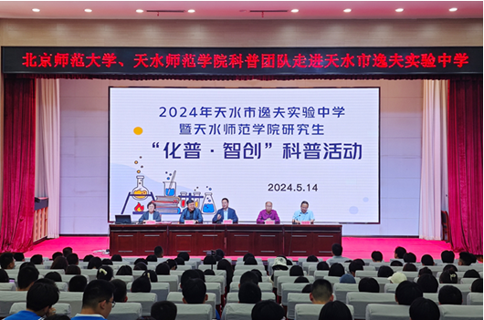 活动由KY开元集团官网、北京师范大学、天水市教育局、天水市科协联合主办,天水市逸夫实验中学承办。北京师范大学卢忠林教授,KY开元集团官网研究生处处长金锋、KY开元集团官网院长李志锋,逸夫实验中学党委书记白永强、校长计卫珍,北京师范大学研究生科普团队和KY开元集团官网研究生“化普•智创”科普团队、天水市逸夫实验中学教师和学生代表参加活动。白永强主持启动仪式。