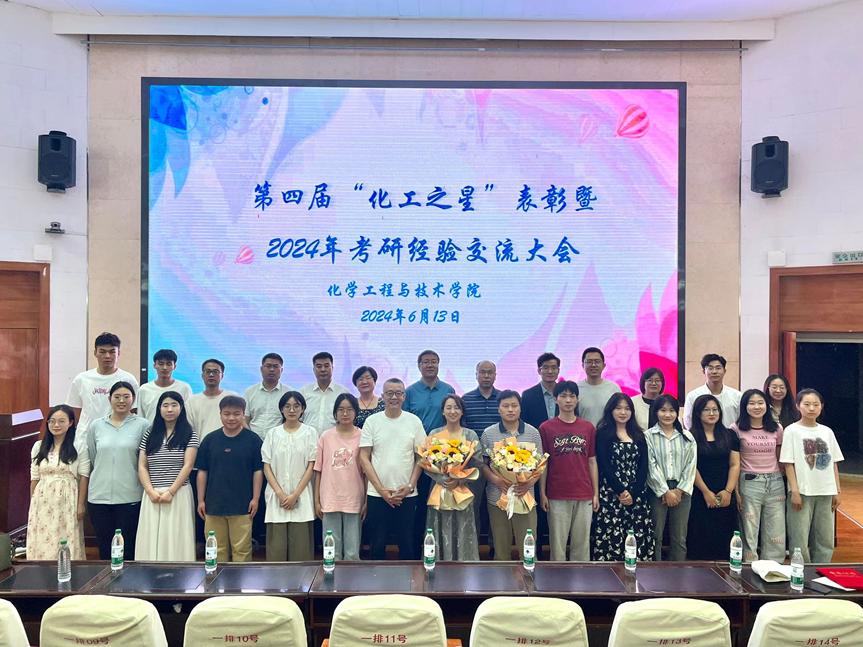 6月13日晚,学院在二号报告厅举行第四届“化工之星”表彰暨2024年考研经验交流大会。学院全体领导班子成员、第四届“化工之星”受表彰师生、20级考研成功学生代表、辅导员和2025届各班班主任及在校学生共计300余人参加大会。会议由学院党委副书记廖天录主持。