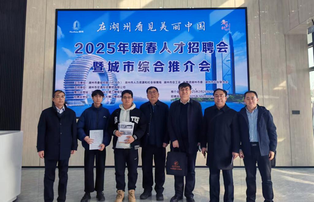 应浙江省湖州市人力资源和社会保障局邀请,近日,党委常委、副校长汪咏国带队参加了湖州2025年新春人才招聘会,并开展长三角地区访企拓岗活动,机电与汽车工程学院、电子信息与电气工程学院、外国语学院、化工工程与技术学院相关负责人及学生代表10余人参加。