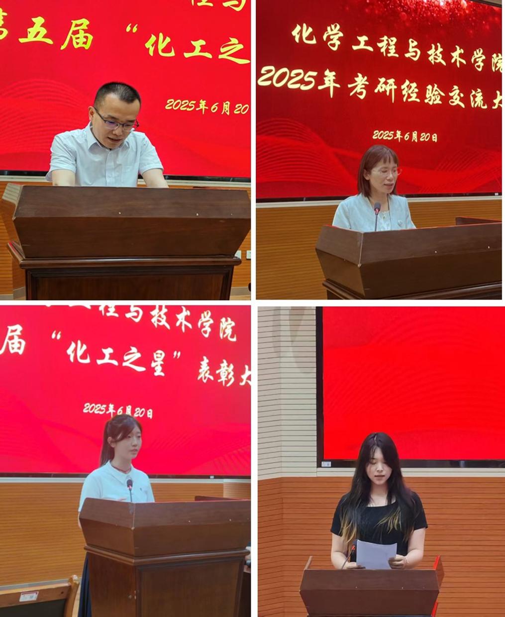 6月20日下午三点,学院在三号报告厅举行第五届“化工之星”表彰暨2025年考研经验交流大会。学院领导班子成员、第五届“化工之星”受表彰教师及学生、21级考研成功学生代表、辅导员、22级各班班主任及全体在校学生共计200余人参加大会。会议由学院党委副书记廖天录主持。